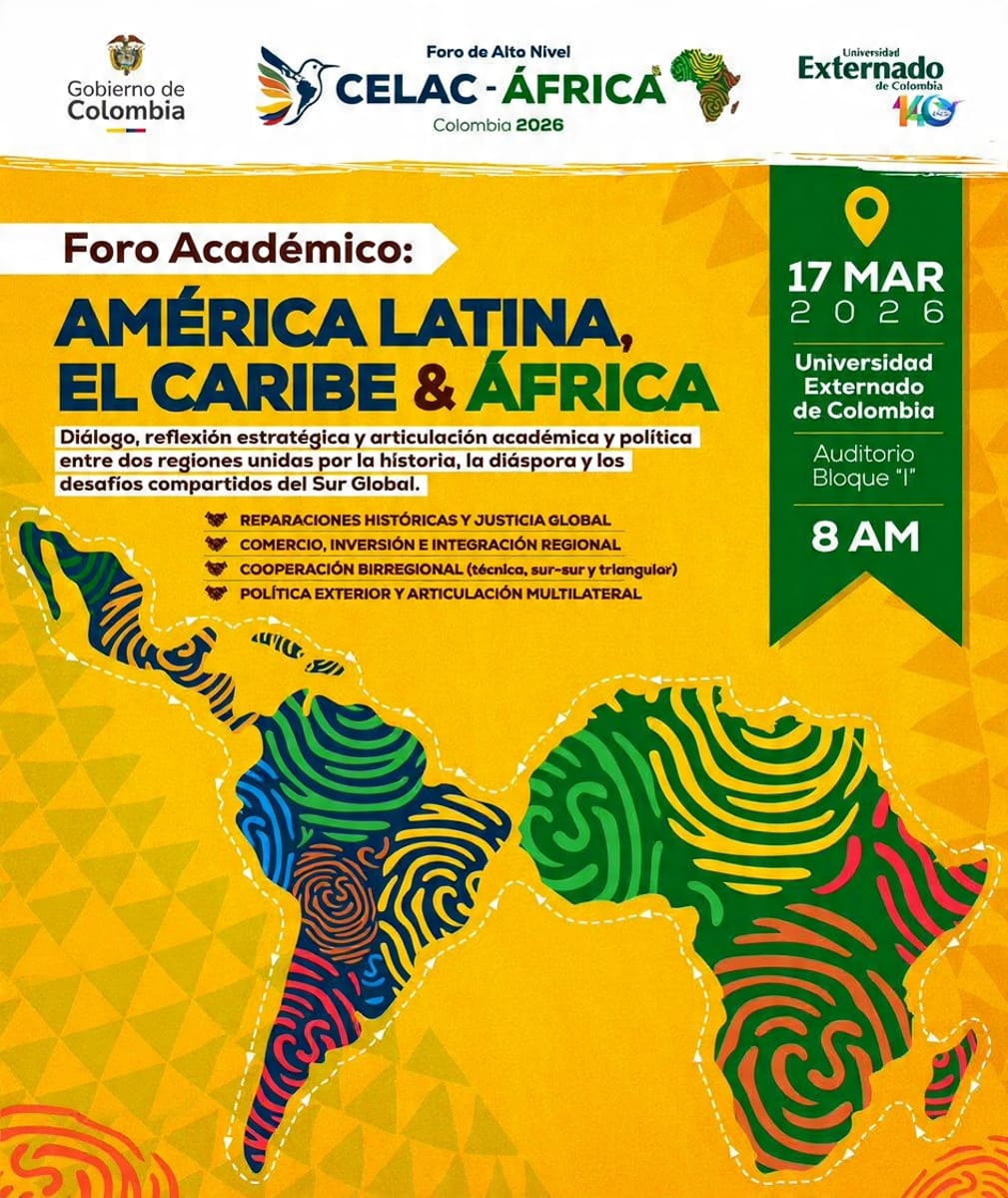 El Foro de Alto Nivel CELAC-África 2026 en Bogotá (18-21 de marzo) es un hito histórico para fortalecer la cooperación Sur-Sur entre América Latina, el Caribe y África. Este encuentro bicontinental busca consolidar la integración birregional, impulsar el comercio y coordinar posturas sobre cambio climático, seguridad, paz y reparación histórica.